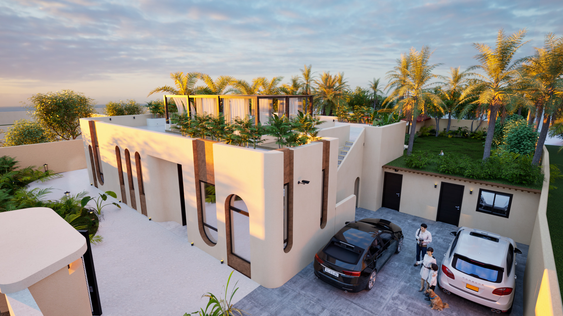 Ce projet de villa d’inspiration balinaise a été conçu pour offrir une architecture harmonieuse, ouverte sur l’extérieur et en parfaite relation avec son environnement. Les volumes, les circulations et les espaces de vie ont été pensés pour favoriser la lumière naturelle, la ventilation et le confort au quotidien, tout en intégrant une esthétique sobre et raffinée.